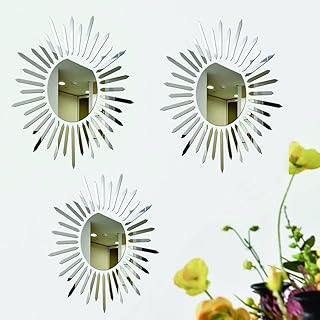 3Pcs Kleine Spiegel,Silberspiegel,Silberne Dekorative Spiegel,Selbstklebender Spiegel,Runde Sunburst Wandspiegel,Silberspiegel für Wände,Spiegel Wandaufkleber,Wandspiegel,Spiegel Vintage.