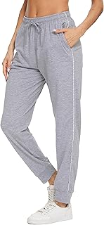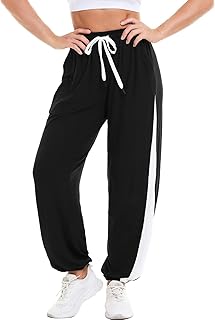 HAPYWER Damen Jogginghose Baumwolle Sporthose Lang mit Taschen Trainingshose High Waist Jogginghose mit Streifen Freizeithose Loose Yogahose S-XXL