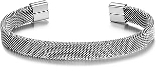 Manschettenarmband aus Silbersilber-Stahlgeflecht für Herren