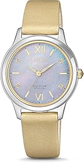 Damen Analog Eco-Drive Uhr Super Titanium Perlmuttzifferblatt Gold EM0724-17Y