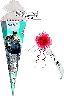 alles-meine.de GmbH Sound Modul & LED Licht Effekt _ ! - Schultüte - Lokomotive - Eisenbahn - 85 cm / 6 eckig - incl. Namen und individueller Schleife - Organza Abschluß - Zu..