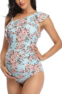 Damen Umstandsbademode One Shoulder Volant Einteiler Druck Badeanzug